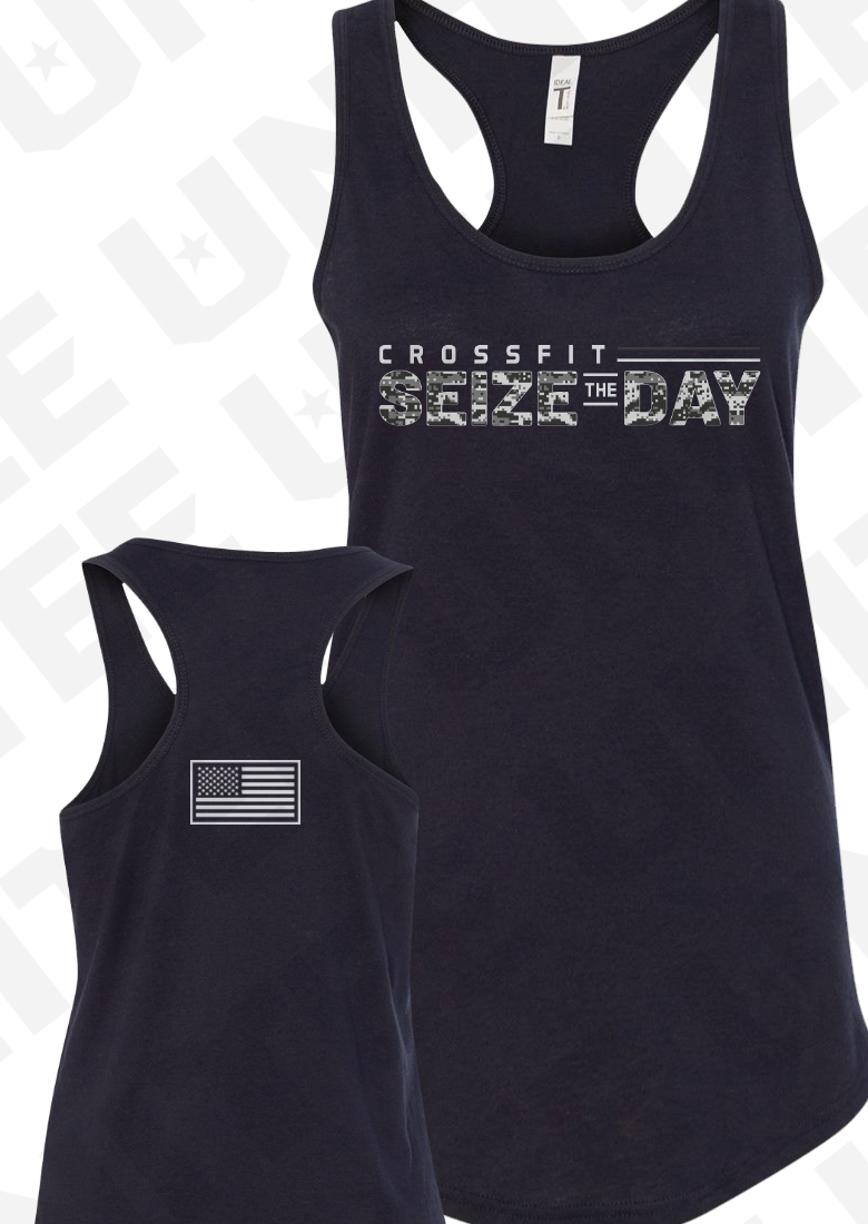 Ladies Racerback Tank available in Black / White